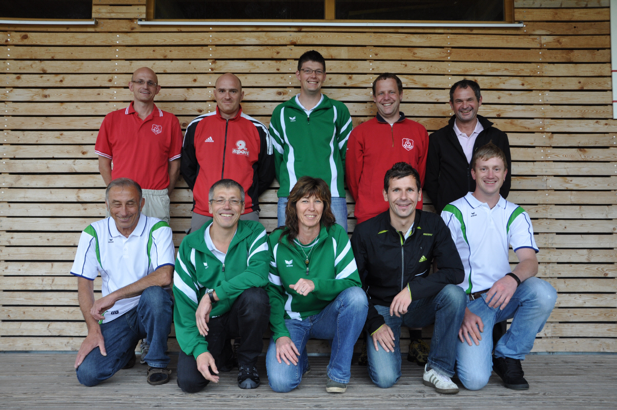 von links: Spielervertreter Dieter Kulmus, Andreas Vogler, 2. Vorstand Werner Möslang, Jugendleiter Andreas Helmle, Kassiererin Angelina Kulmus, AH-Manager Jens Guthsmuths, Schriftführerin Sabine Arndt, 1. Vorstand Siegfried Wiedemann, Spielervertreter Christian Steiger