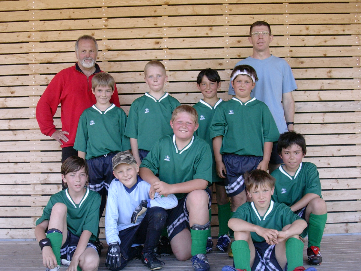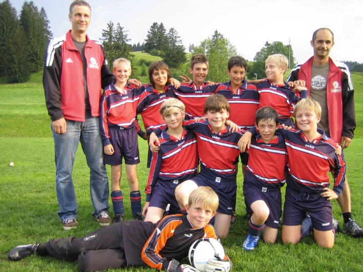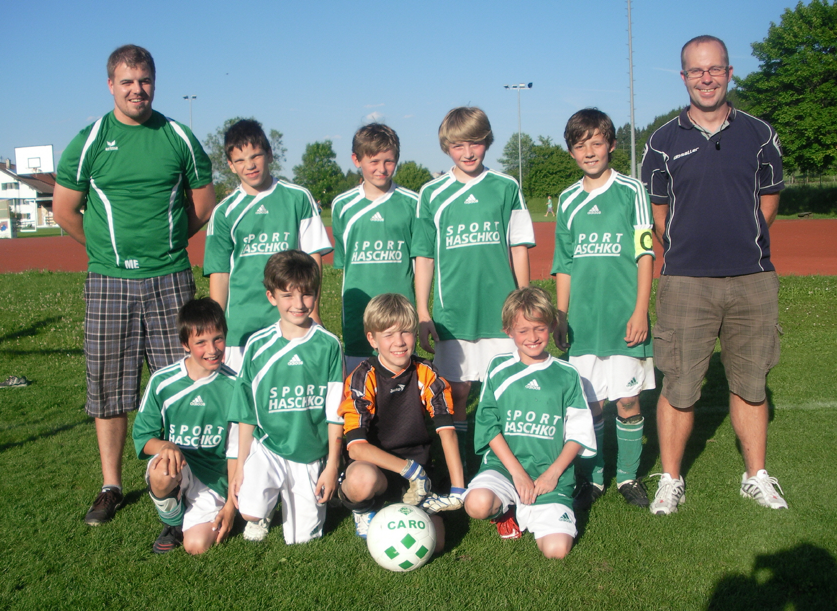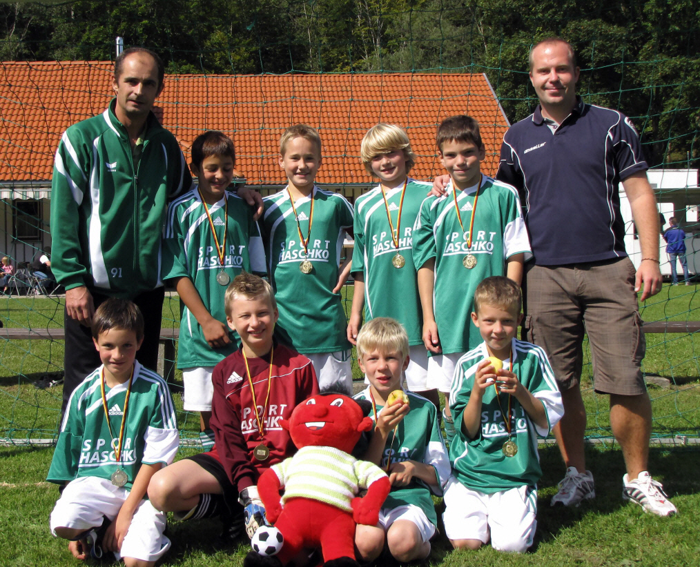 Hinten: Trainer Hubert Stöhr, Samuel Erkan, Luis Stöhr, Elias Baiz, Alexander Wassermann, Trainer Markus Schneider