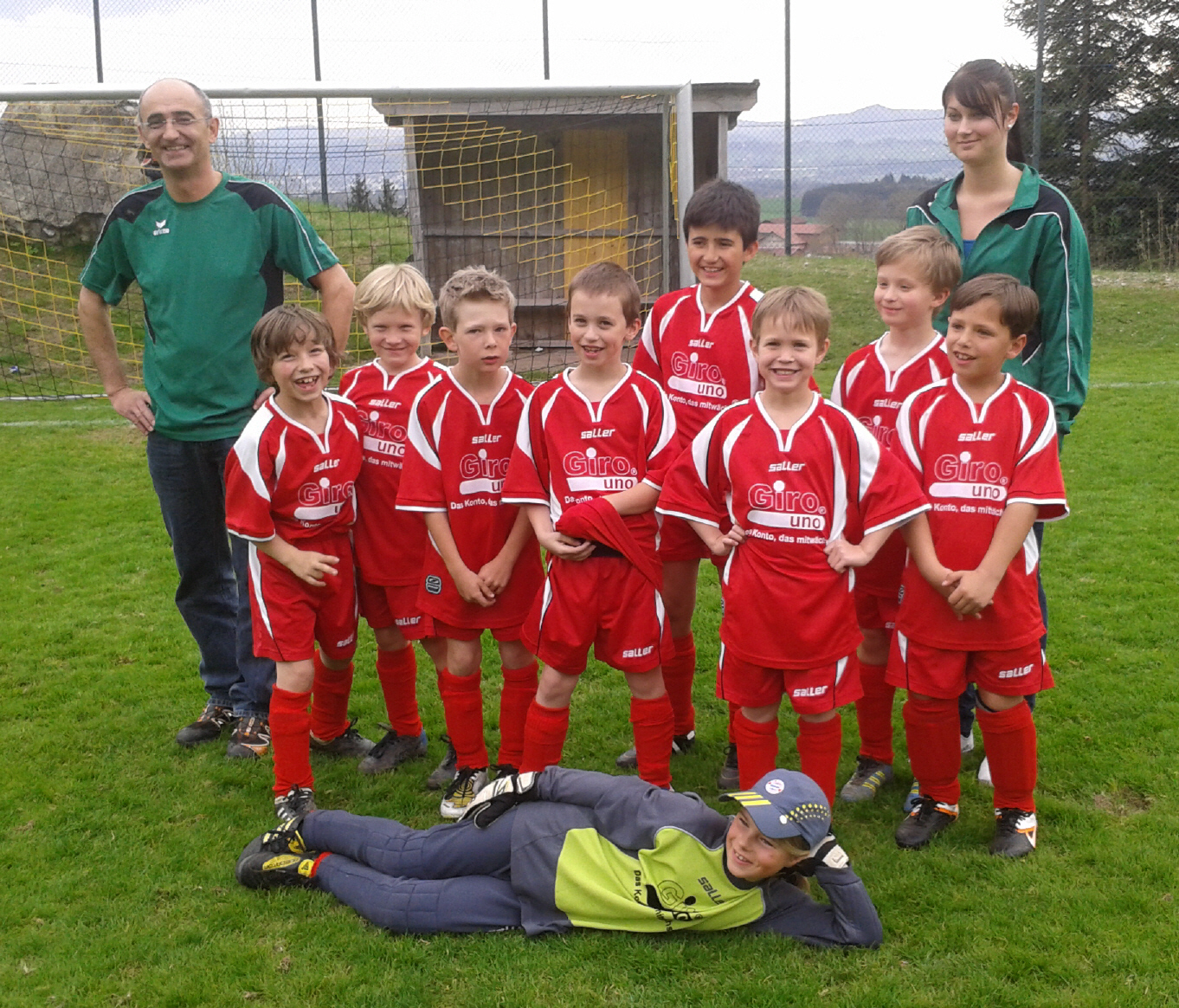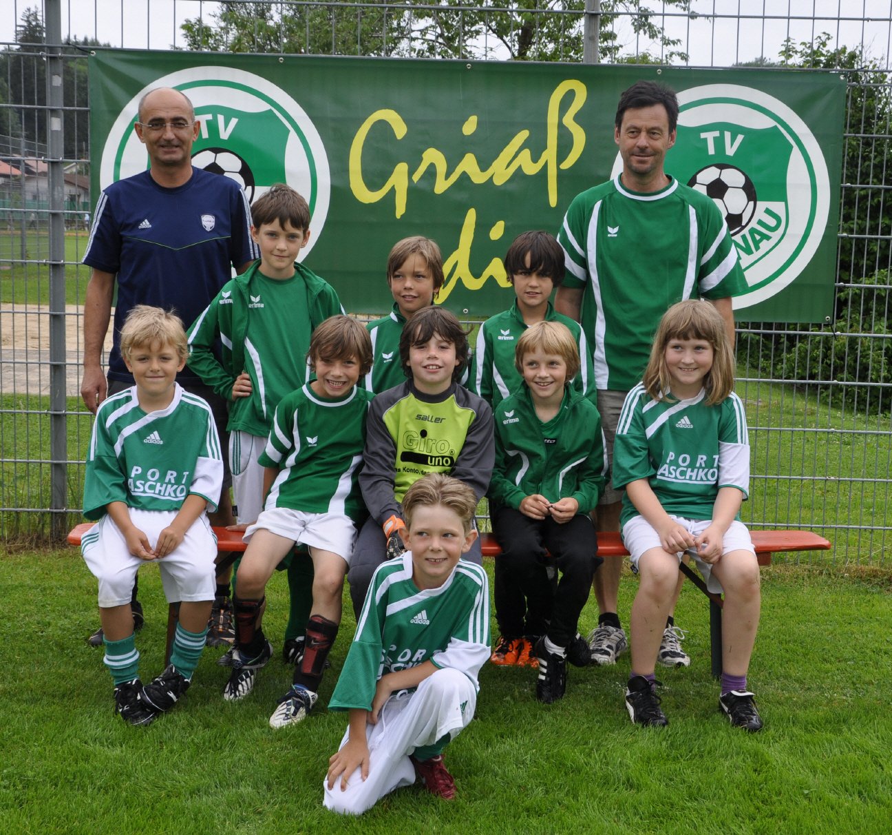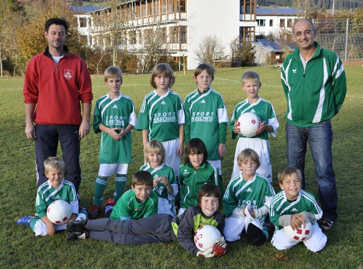 Vordere Reihe von links: Philipp Laur, Matis Bölle, Leonas Pfeiffer, Elias Keck, Torwart Nico Steiger, Leon Schneider und Max Bölle