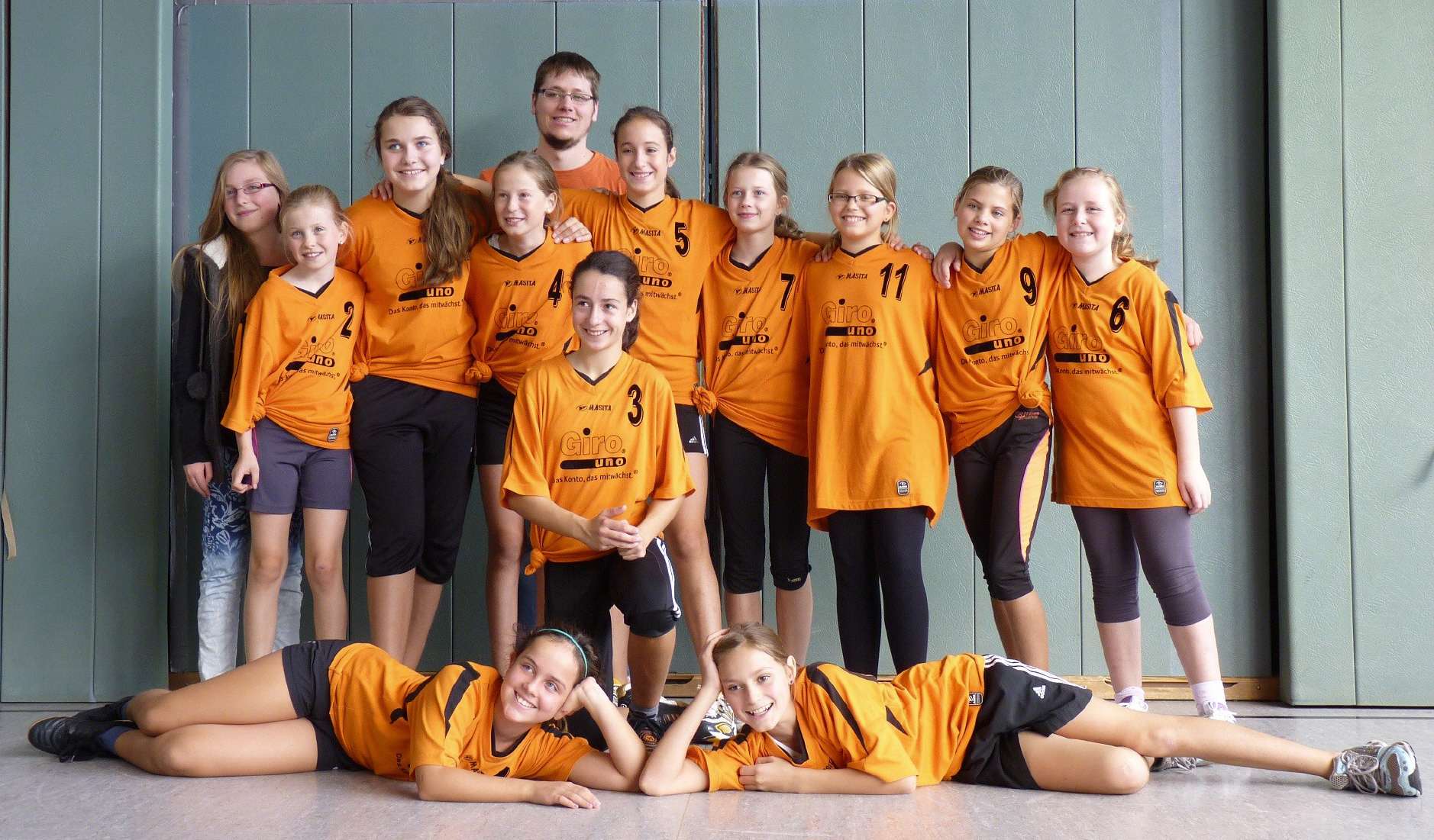 Die neu formierte U-14 Mädchen der Weitnauer Volleyballer mit Trainer Bernhard Hitzler