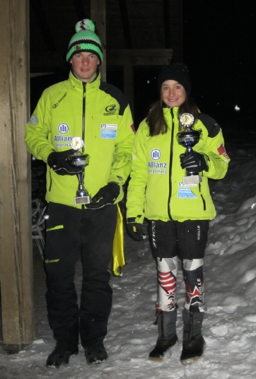 Gegen 16.45 Uhr hieß es dann: "Start frei". Alfred Schneider legte sogleich mit 35,52 sec eine schnelle Zeit auf die Piste. Erst Julian Simion gelang es, mit 35,10 sec, eine neue Bestmarke zu setzen. Schwester Mirjam unterbot diese nochmals. Mit ausgezeichneten 34,85 sec gelang ihr die zweitschnellste Zeit am Tag und die schnellste aller weiblichen Teilnehmerinnen. Als 52. Starter brillierte dann Leo Schubert mit einem hervorragenden Lauf in 33,57 sec. An dieser Vorlage kamen weder die Jugendlichen noch die Damen und Herren vorbei. Leos Zeit bedeutete den Tagessieg.