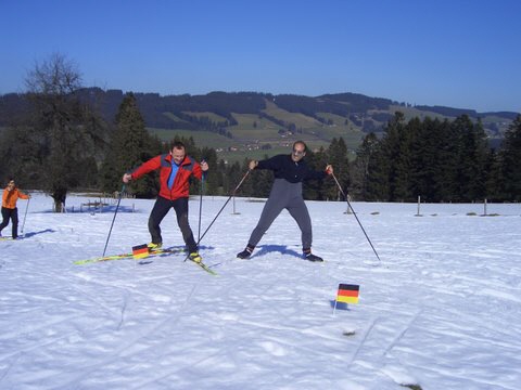 Sie hatten ganz überraschend am „Hellanger-Gletscher“ optimale Schneeverhältnisse vorgefunden, was ihnen zuerst keiner glaubte. Nach einem kurzen Fußmarsch über aperes Gelände erreichten 22 Teilnehmer die schneereiche, gut ausgeflaggte Strecke. Da es ein 2er Teamlauf war entschied das Los die Paarungen. Jedes Team hatte pro Lauf zwei Runden zu bewältigen und durch Ausscheideverfahren wurde das Siegerteam ermittelt.