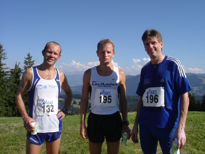 Auch der Zweitplatzierte Albrecht Ollech (32:17) vom SSV Wertach ist ein alter Hase in Sachen Hauchenberglauf, bereits zum fünften Mal am Start, musste er sich nur Ernst geschlagen geben und war darüber im Ziel nicht unglücklich: „Mir wird ja immer nachgesagt, dass ich mit meinen Zeiten unzufrieden bin, aber heute muss man zufrieden sein, an Walter (Ernst) konnte ich heut nicht dranbleiben, aber mit 43 ist das auch nicht mehr so einfach.“ Mit Anton Philipp von der TV Jahn Kempten überquerte ein gebürtiger Weitnauer in 32:39 als dritter den Zielstrich, auch er war mit seiner gegenüber dem Vorjahr verbesserten Zeit sichtlich zufrieden .