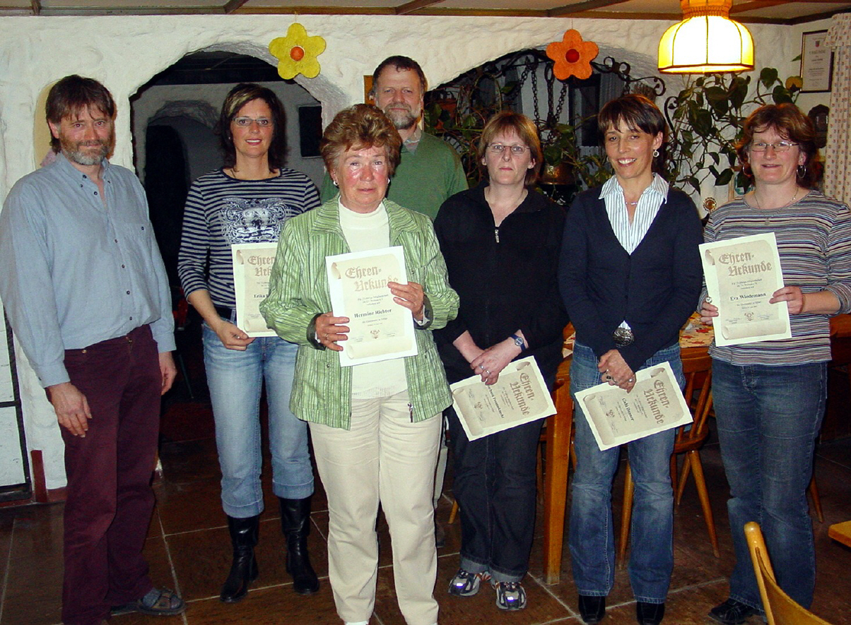 Ehrungen: Für 25-jährige Mitgliedschaft erhielten folgende Mitglieder eine Urkunde: