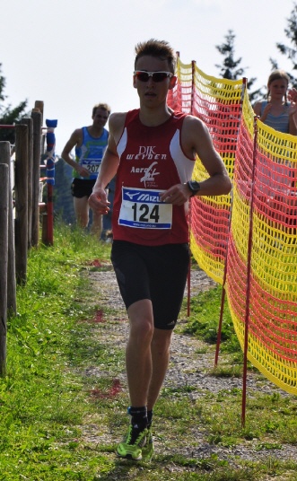 Lange Zeit sah es so aus, als ob Vorjahressieger Quirin Schmölz seinen Titel beim 31 Walter-Riedle-Hauchenberglauf verteidigen können würde, doch dann fasste sich ein ganz junges Berglauftalent ein Herz: Bei Kilometer Sechs zog Maximilian Zeus, Jahrgang 1995 von der DJK Weiden einen Zwischenspurt an und Lokalmatador Schmölz aus Missen, der für das Team Laufsport Saukel b_faster antrat, musste abreißen lassen. Im Ziel nach 6,8 Kilometer und 509 Höhenmeter standen für den Oberpfälzer 30:05 Minuten zu Buche, Schmölz überquerte die Ziellinie sechs Sekunden später. Für Zeus, der erst das zweite Mal am Hauchenberg antrat, war es gleichzeitig der Titel des Bayerischen Jugend-Berglaufmeisters. Beide Athleten waren sich einig, dass bei der sommerlichen Hitze der Streckenrekord von 28:08 Minuten nicht drin war, zumal Zeus im Endspurt gegen den acht Jahre älteren Schmölz alles geben musste. Völlig ausgepumpt im Ziel liegend gab es vom Sieger als erstes ein dickes Lob: „Tolle Strecke, tolle Organisation und eine gigantische Aussicht hier oben.“ Eine Aussage über die sich das Organisationsteam um Clemens Krinn und Dieter Herz, mit über 60 freiwilligen Helfern besonders freuen dürfte.