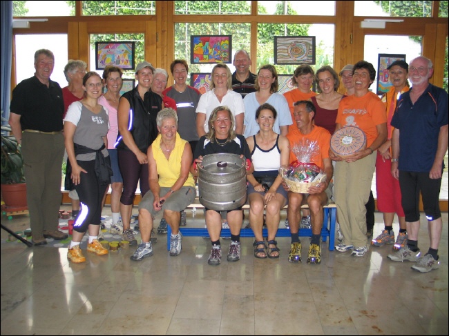 Geradezu ideales Wetter begleitete die große Laufveranstaltung, die der TV Weitnau am vergangenen Wochenende organisiert hatte. Neben dem Hauchenberglauf und dem Neuner Zweier-Team-Schülerlauf fand erstmals ein Nordic-Walking-Wettbewerb auf dem Carl-Hirnbein-Weg mit einer respektablen Teilnehmerzahl statt. Die über 10,4 km lange Laufstrecke wurde für die Teilnehmer nicht nach Zeit gestoppt. Einen Preis erhielt dieses Mal die größte der Läufergruppen vom TV Weitnau. Neue T-Shirts für diese Laufveranstaltung, gesponsert von Bürgermeister Peter Freytag, der die Laufstrecke gemeinsam mit TV-Vorstand Rainer Hitzler bewältigte, schafften für die Betreuungscrew einen einheitlichen Auftritt, der gut ankam.