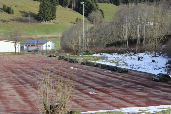 Die Vorarbeiten waren im Herbst bereits abgeschlossen und die Kunstrasenrollen lagen einbaubereit auf dem Platz, dann schlug der Winter gnadenlos zu – die Kunstrasenrollen versanken unter einem Berg aus Schnee. An einen Einbau war da natürlich nicht mehr zu denken, jetzt aber ist der Hartplatz wieder fast schneefrei, und in Kürze soll ein neuer Versuch gestartet werden.