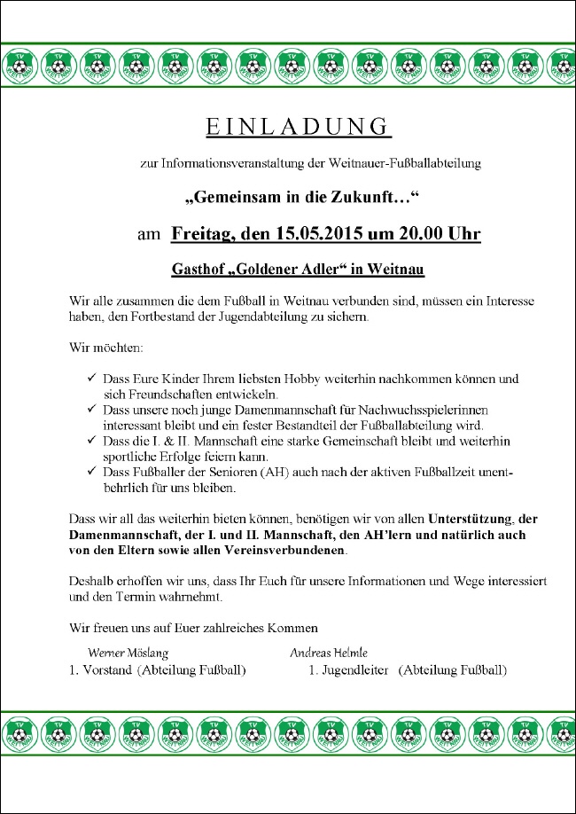 Zur diesjährigen Weihnachtsfeier sind alle Spieler/ -innen, Mitglieder und Fördervereinsmitglieder am SAMSTAG, 19. DEZEMBER 2015 in den Gasthof ‘Goldener Adler’ in Weitnau herzlich eingeladen.