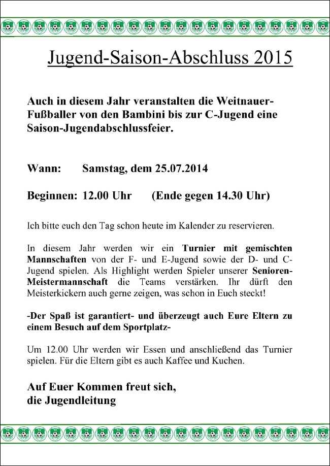 Fußball-Jugendabschlussfeier der Bambini bis C-Jugendmannschaft